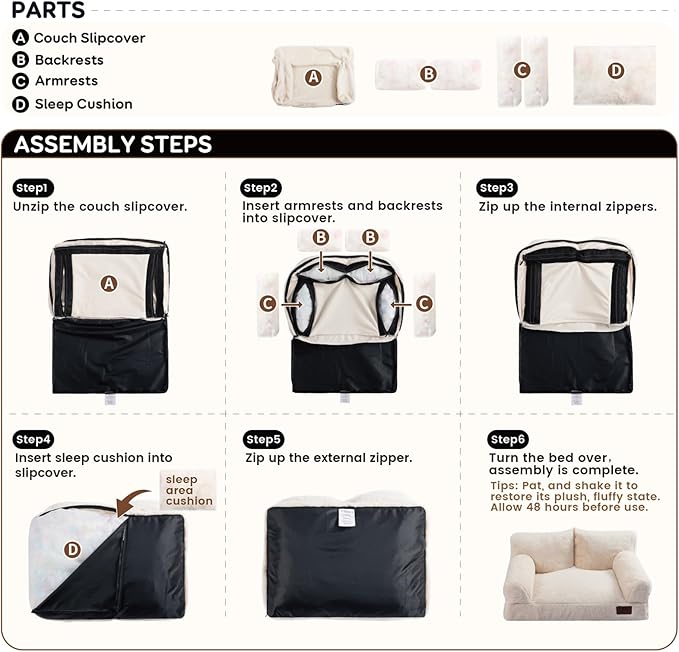 - 【Assemble Tips】The Hollypet cat bed will arrive as a vacuum-packed bed in a box, please carefully unpack the cat sofa couch, then pat and shake it to make sure it is completely fluffy and wait 48 hours before using the pet bed