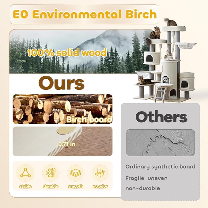 - 100% BIRCH MATERIAL: selected high-quality birch wood panels, the whole is stronger, stable and durable, the surface is flat and smooth, hand-polished, no burrs, does not hurt the cat's skin, the planks have a fine texture, E0-grade wood, no odor, safer to put in your home.