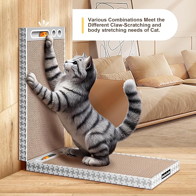 - 5. 3-IN-1 MULTI-FUNCTIONAL CAT SCRATCHING PAD: Use as a wall-mounted scratcher, corrugated cat lounge, or combine 3+ boards into a modular system for multi-cat play. Sleek silver-gray patterns blend with modern decor.