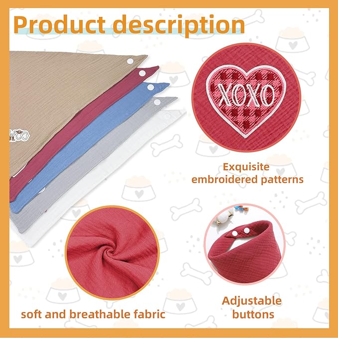 Adjustable Cotton Dog Bandana with Heart Embroidery - Wine Red, Medium