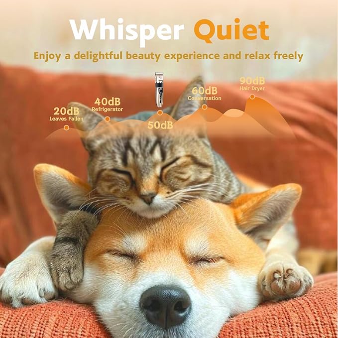 - 【QUIET MOTOR AND LOW NOISE】Shaver for cutting dog hair for Stress-Free Trimming Dog nail trimmers is only about 50dB in operation, allowing even the most timid and sensitive pets to enjoy their grooming experience without fear. High rotating speed motor provides strong and lasting power to the running blades, which means trim thick hair without blocking, snag or pull