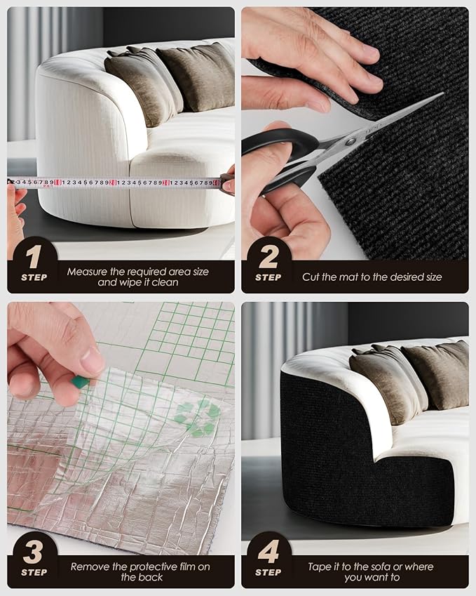 - 【Trim-to-Fit Design】The mat is designed to be easy to trim and can be easily cut with scissors to your satisfactory size or shape to fit different spaces and cat furniture configurations. This flexibility allows you to customise the mat to suit specific cat trees, wall furniture or other areas your cat prefers.