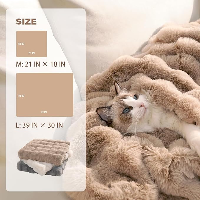 - PERFECT SIZES FOR CATS SMALL & DOGS: Choose the M size (21x18in) cat blanket ideal for kittens and cats, or the L size (39x30in) dog blanket perfect for small dogs and puppies. These cat blankets for indoor cats and dog blankets for small dogs are perfectly sized for your loved pets.