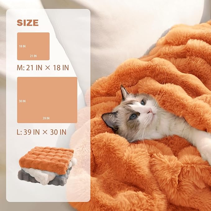 - PERFECT SIZES FOR CATS SMALL & DOGS: Choose the M size (21x18in) cat blanket ideal for kittens and cats, or the L size (39x30in) dog blanket perfect for small dogs and puppies. These cat blankets for indoor cats and dog blankets for small dogs are perfectly sized for your loved pets.