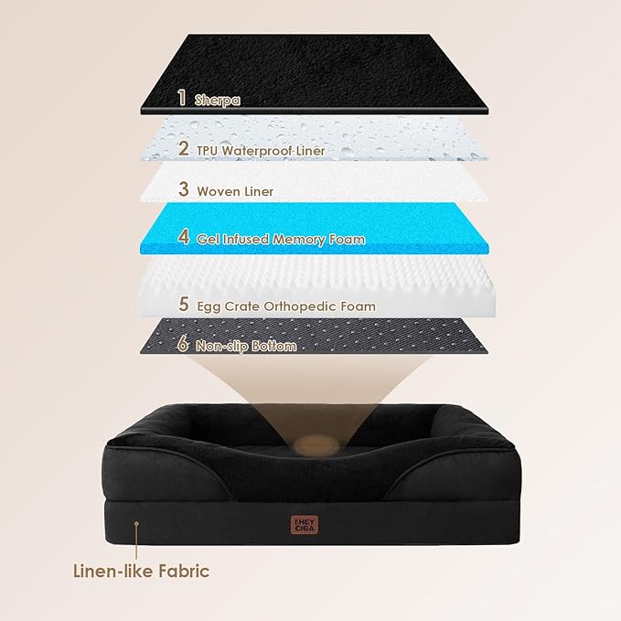 - MEMORY FOAM: The EHEYCIGA orthopedic dog bed, endowed with memory foam and egg crate foam, ensures balanced support and pressure release. Its blend of plushness and stability is ideal for older dogs, easing the strain on their joints.