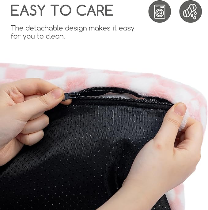 Hollypet Fluffy Plush Dog Cat Pet Couch Soft Calming Sofa Bed for Medium Small Cats and Dogs, Pink and White