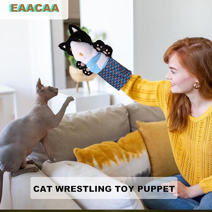 - 【UNIQUE SHAPE AND RICH FUNCTIONS】The cat puppet wrestler, created in the image of a cute cat, has both boxing and wrestling elements, and can simulate a variety of interactive scenarios, such as confrontation and bear hugs, etc., so that both the owner and the cat can engage in a fun “wrestling” game, which will fully stimulate the cat's hunting instincts and enthusiasm for the game