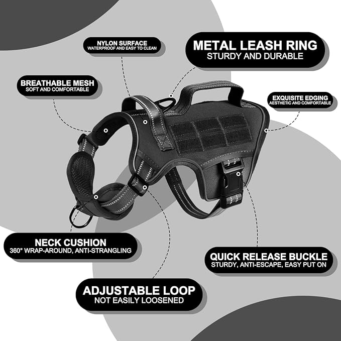 - Easy Control: The front metal leash ring is designed for no-pull control, making it perfect for training or dogs that frequently pull, while the rear ring is ideal for leisurely walks, jogging, or hiking. The dog harness features horizontal and vertical nylon handles for easy grip on your dog.