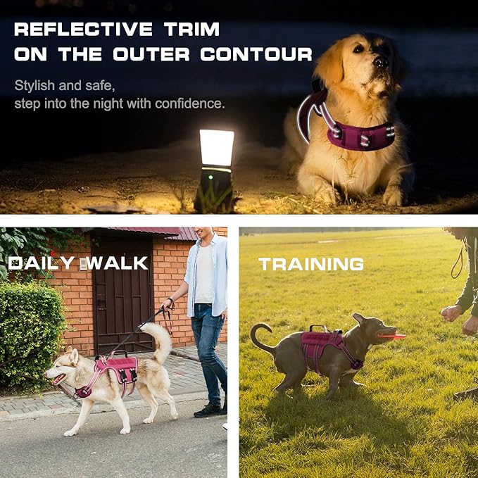 - Easy Control: The front metal leash ring is designed for no-pull control, making it perfect for training or dogs that frequently pull, while the rear ring is ideal for leisurely walks, jogging, or hiking. The dog harness features horizontal and vertical nylon handles for easy grip on your dog.