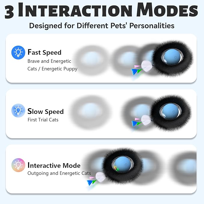 - 【Harmonious Living for You and Your Pets】: The thoughtful "Do Not Disturb" mode ensures the ball won't activate automatically at night, allowing both you and your pet to enjoy a peaceful sleep. The ball use silicone and plush materials, the ball operates quietly, reducing noise effecitively.