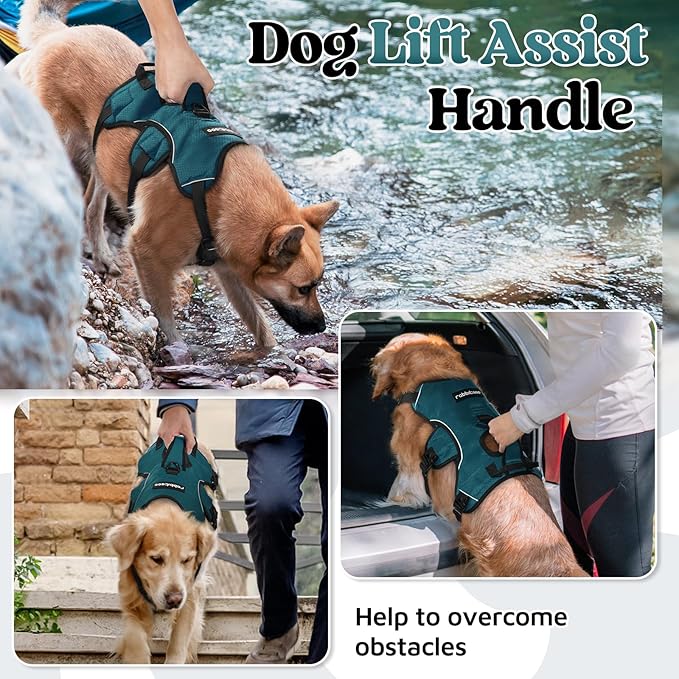 rabbitgoo Escape Proof Dog Harness Medium, Soft Padded Full Body Pet Harness, Reflective Adjustable No Pull Vest with Lift Handle and Leash Clip for Walking Hiking Training, Dark Green, M