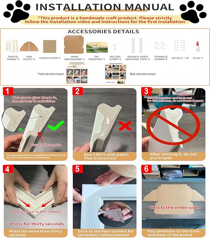 - 【ECO - friendly & Long - Lasting】The oil painting frame cardboard cat house is made from durable cardboard that cats love. It resists bending and can support up to 50 pounds, ensuring it will be your cat's favorite spot for years. The design includes a replaceable scratching board, which helps keep the cat house in top condition, offering a great eco-friendly option for your pet’s comfort.