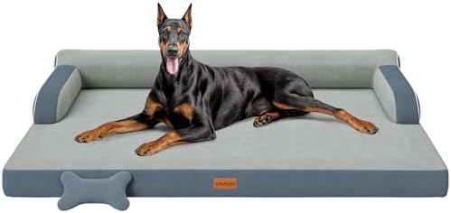 XXL Orthopedic Dog Bed, Big Dog Bed for Large Dogs, Dual-Sided Pet Cooling Beds with Memory Foam Washable Cover Nonslip Bottom, Waterproof Pet Couch with Bolsters, Dark Grey