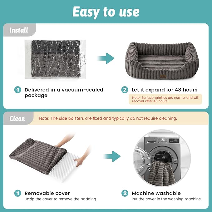 - Easy-Clean & Removable Design: Removable cover (machine washable + tumble dry) for hassle-free maintenance. Anti-slip granular bottom keeps the bed in place, indoors or outdoors. Note: Sides are not removable, just wash the padded cover when not dirty.