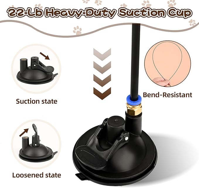 - 【Enhanced Suction Cup & Cat Wand】Our upgraded suction cup supports up to 22 pounds, sticking firmly to smooth surfaces like tiles, glass, and hardwood floors. It comes with 2 detachable cat wands that can be used either handheld or mounted on the suction cup.