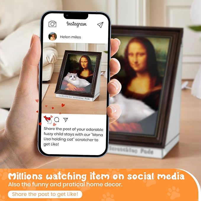 Mona Lisa Cat Bed Painting Cat Scratcher Bed CartBoard Cat House for Indoor Cats Half-Surround Design W/Horizontal Cat Scratcher Scratching Board W/Catnip (B1-Mona Lisa, Frame Pre-Taped)