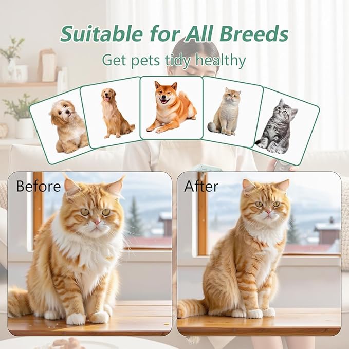 - 【Suitable for All Pets】Lightweight and Portable This steam brush is perfect for all types of pets, including both long-haired and short-haired cats. It effectively removes loose fur, reduces matting, and minimizes static interference. One full charge provides up to a week of use, making it ideal for everyday grooming needs, allowing you to give your pet a professional-level grooming experience anytime.