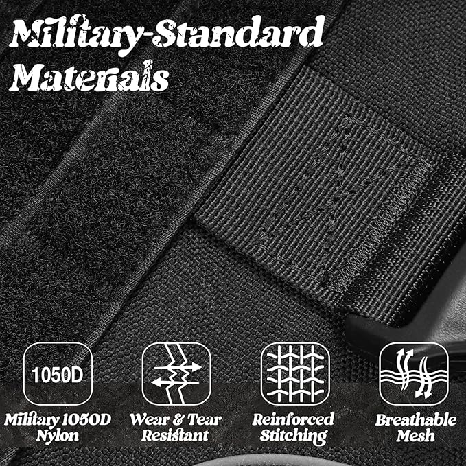 - Military-Grade Durability: 1050D nylon with reinforced webbing resists extreme pulling and chewing. Padded air-mesh lining, rustproof buckles, and reinforced stitching ensure durability. Perfect for K9 training, search missions, and outdoor use.