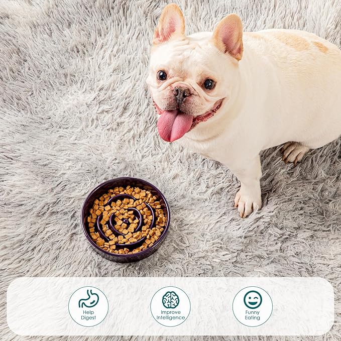 - Healthy Ceramic Slow Feeder: Made from 100% non-toxic ceramic, this bowl is a safer alternative to plastic. Its smooth, scratch-resistant, and stain-resistant surface resists dirt buildup and prevents black chin stains—keeping your dog's face cleaner and healthier. Plus, ceramic's non-porous material ensures easy cleaning with no lingering odors or residue.