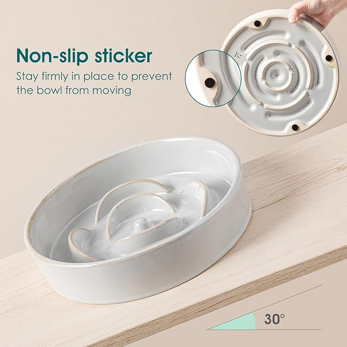 - 8X Heavier Than Plastic: Made of sturdy ceramic (4 LB, 8x heavier than plastic), it prevents tipping and spills for mess-free dining. The bottom of the ceramic slow feeder dog bowl with non-skip stickers keeps the bowl firmly in place. A Clean solution for playful eaters!