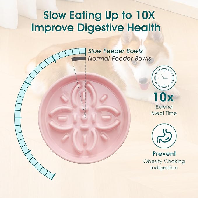 - 【Elegant & Functional Design】 This beautifully crafted ceramic dog bowl features a stunning floral pattern with a raised flower centerpiece—not just for aesthetics, but to slow down your dog’s eating by up to 10x compared to regular bowls!