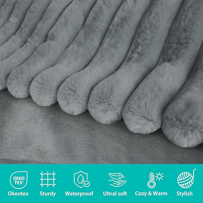 Waterproof Dog Blanket for Bed, Luxury Plush Washable Large Dogs Blankets for Furniture Protection, Super Soft Calming Pet Blanket for Indoors (Grey, 60"x80")
