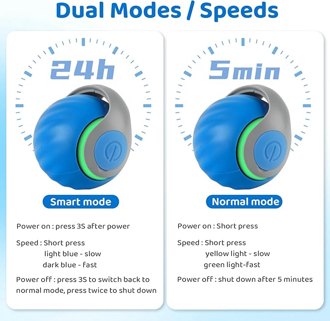 - 🐱【Rechargeable Cat Toy with USB Fast Charging】Electric cat toy dual modes+automatic cat toys obstacle-dodging ensure non-stop play.Battery operated cat toys support long standby.The rolling cat toy offers 2 genius modes,Interactive Cat Toys Moving Normal mode (5-min auto-off) and Smart mode (Standby after 5 minutes,Run immediately after tounch),Electric cat ball toy with rope,Toys for cats to keep them busy