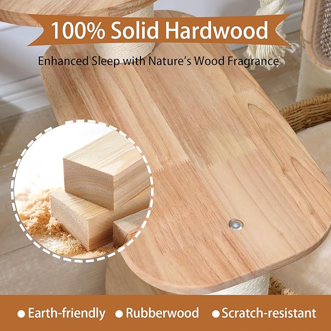 - 【Natural Materials】Crafted from pure rubber wood with 3" thick sisal posts and handwoven rattan nest. Natural sisal ropes satisfy cats' scratching needs while protecting furniture. Perfect for medium/large cats and multi-cat homes.