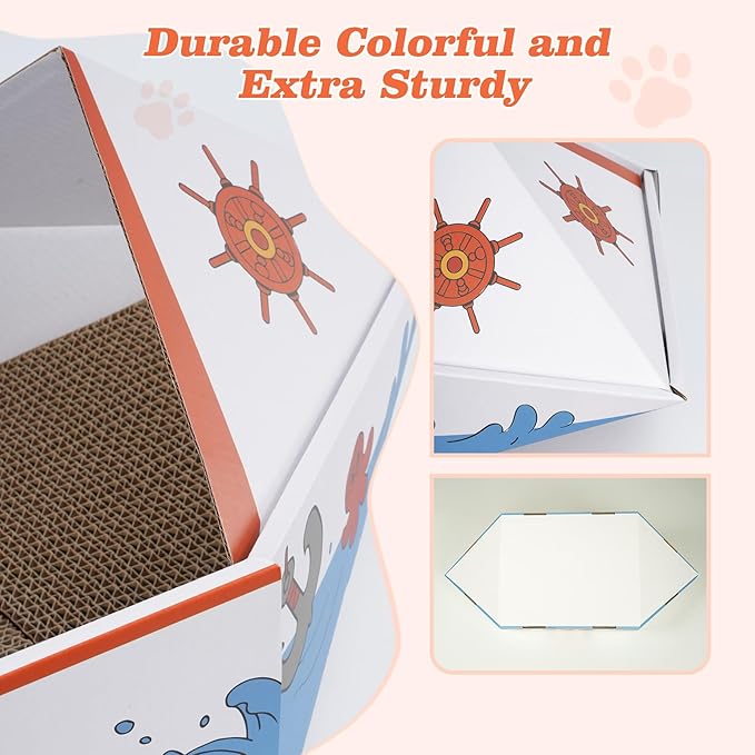 - Boat Shaped, Cute and Durable: Unique design, add fun to the family. Easy to install, stable structure, thick and durable, no fear of cats chasing and playing