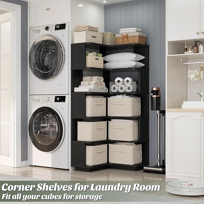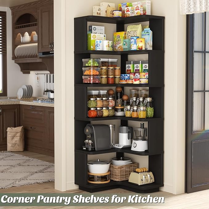 - Multi-Room Versatility – This corner book shelf stand transcends traditional storage, serving as a modular hub for every space in your home. This wood corner shelf can elegantly display art, trailing plants, or books in your living room and office; it can organize sweaters (in fabric bins) and perfumes in the bedroom; it can hold cookbooks or spice jars as corner pantry shelves in the kitchen