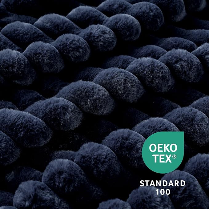 Amélie Home Faux Fur Throw Blanket for Couch, Cozy Fuzzy Fluffy Fur Luxurious Soft Striped Plush Gift Blankets for Family Sofa Chair Bedroom, 55"x70", Navy Blue