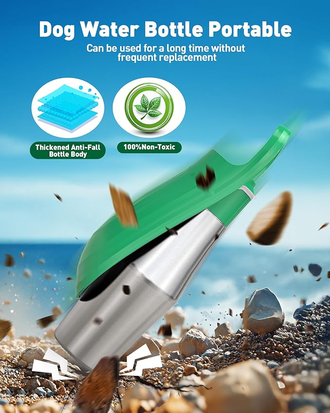 Portable Dog Water Bottle Bowl - 27 oz Travel Water Bowl Dispenser for Dogs, Stainless Steel Leak-Proof, A Must-Have for Outdoor, Camping, Walking, Beach, Hunting and Other Scenes (Green)