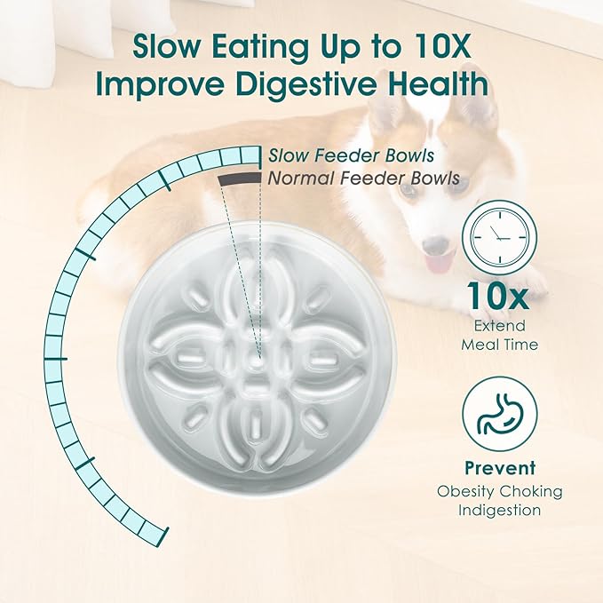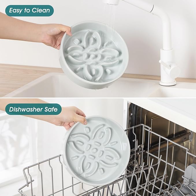 - 【Elegant & Functional Design】 This beautifully crafted ceramic dog bowl features a stunning floral pattern with a raised flower centerpiece—not just for aesthetics, but to slow down your dog’s eating by up to 10x compared to regular bowls!