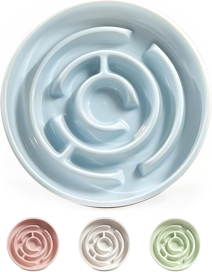 Slow Feeder Dog Bowls, Ceramic Dog Bowl with Anti-Slip, Slow Feeder & Non-Slip Design, Boredom and Anxiety Reducer, Suitable for All Breed Dogs and Cat (Ceramic-Blue)