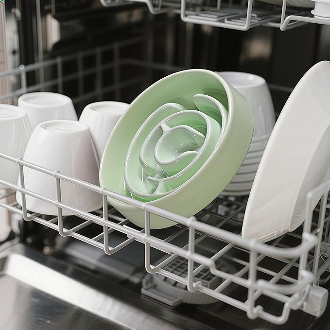 Slow Feeder Dog Bowls, Ceramic Dog Bowl with Anti-Slip, Slow Feeder & Non-Slip Design, Boredom and Anxiety Reducer, Suitable for All Breed Dogs and Cat (Ceramic-Green)