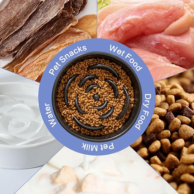 - Heavyweight & Non-Slip Base: This ceramic slow feeder dog bowl measures 8.25"W * 1.85"H" and can hold up to 27oz ≈ 800ml and weighs up to 1.3kg (about 2.86 lbs), suitable for different breeds of medium and large dogs. Stays firmly in place, preventing spills and messes, even with enthusiastic eaters.
