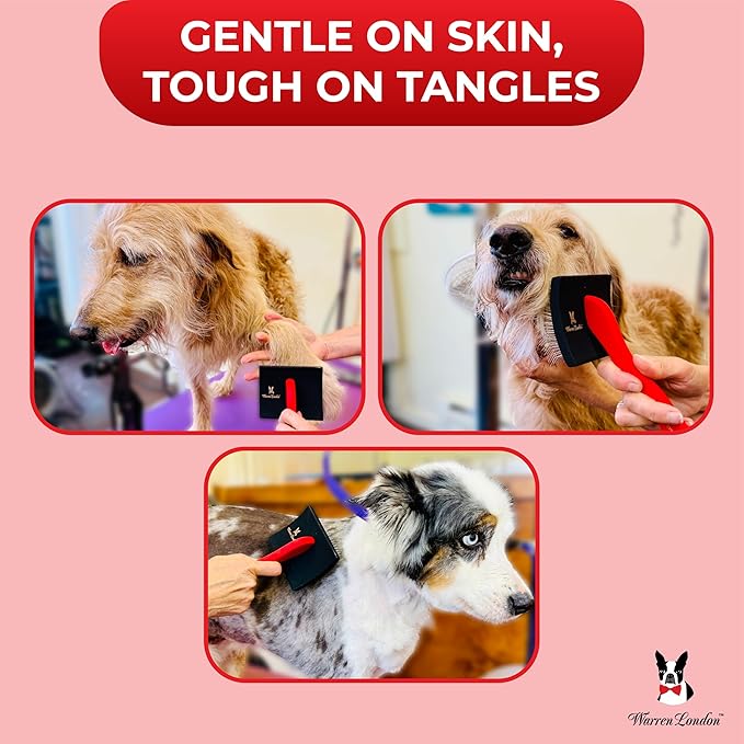 - REMOVE TOUGH MATS & TANGLES FAST – Designed for dense and curly coats, this long pin slicker brush for dogs quickly detangles mats, knots, and loose fur. Works great as a Goldendoodle brush, Poodle brush, or dog brush for thick double coats.