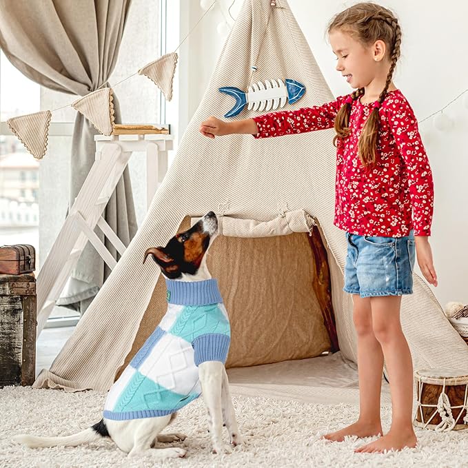Turtleneck Pet Sweaters for Dogs Boys or Girls,Color Inlay and Moving Needle Pattern Dog Sweater,Pet Clothes,Dog Sweaters,Suitable for Various Breeds Dogs or Sizes (Blue Group,S)