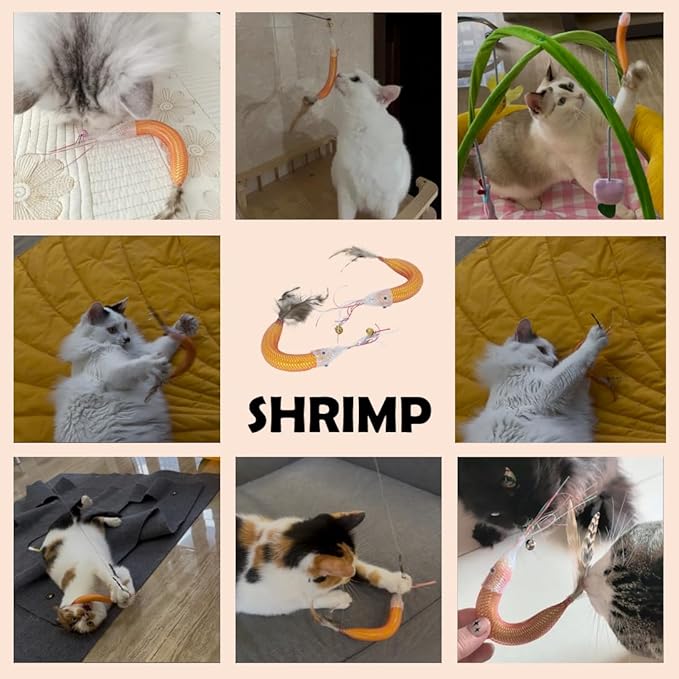 - REALISTIC Looking - The cat wand attachments are so REALISTIC looking like natural shrimp, which may bring out your cats’ natural hunting instinct and bring great fun. It is important for cats who need exercise to control their weight