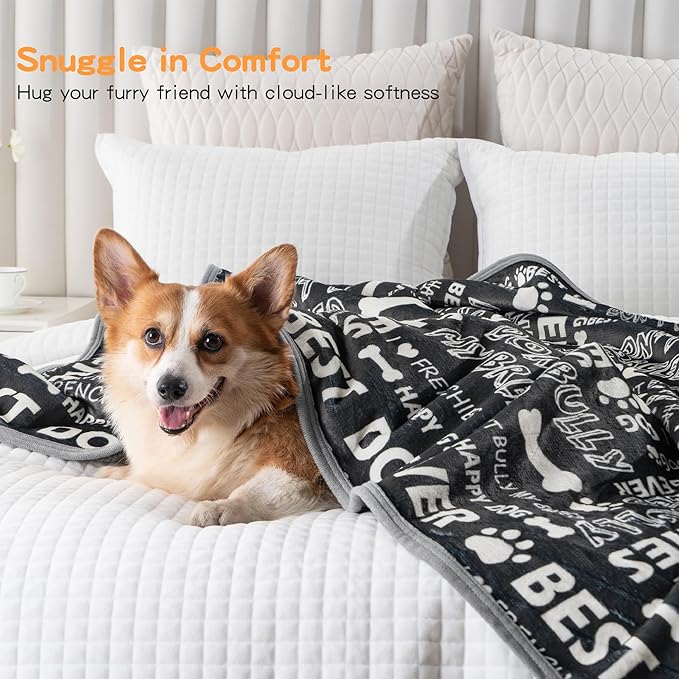 Waterproof Dog Blankets Pet Blanket, 30"x40" Cat Blanket for Indoor Cats, Soft Fluffy Sofa Car Bed Protector, Reversible Sherpa Fleece Puppy Blanket for Small Medium Dogs(Letters)
