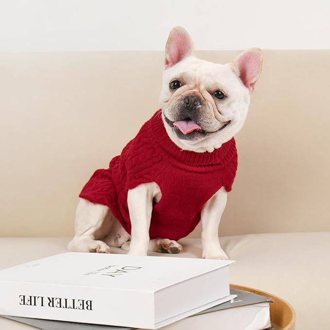 2 Pack Dog Sweaters for Medium Dogs Turtleneck Pullover Cable Knit Stretch Clothes French Bulldog Dachshund Boston Terrier Corgi Beagle Pug Boy Girl Pets Winter Clothes (L, Red & Brown)