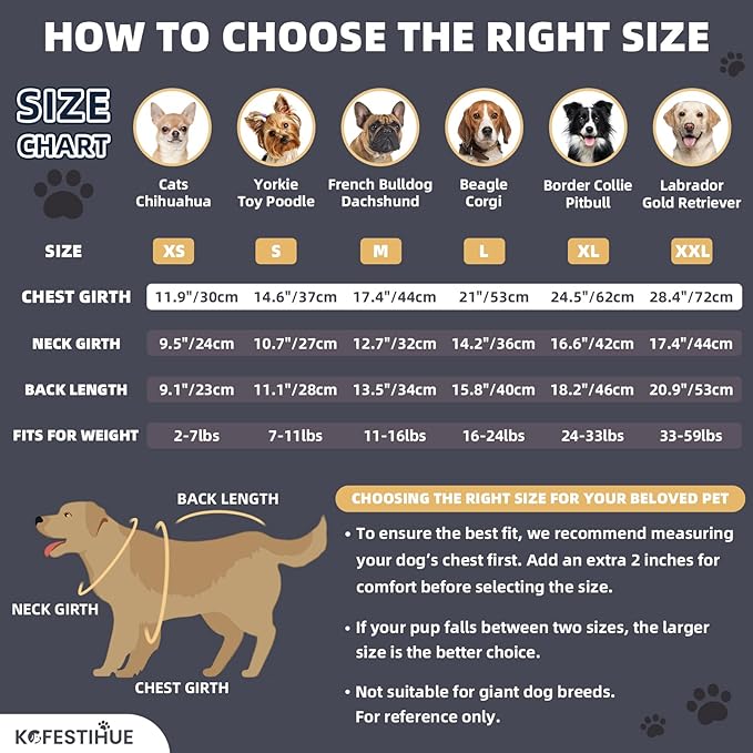 - Not suitable for medium or large dog breeds. Size S fits 14.6" chest, 11.1" back, and 10.7" neck. Please prioritize chest measurement when selecting the size. Ideal for Chihuahua, Maltese, Pomeranian, Poodle, Shih Tzu, Miniature Pinscher. If your dog's measurements fall between sizes, choose the larger one.