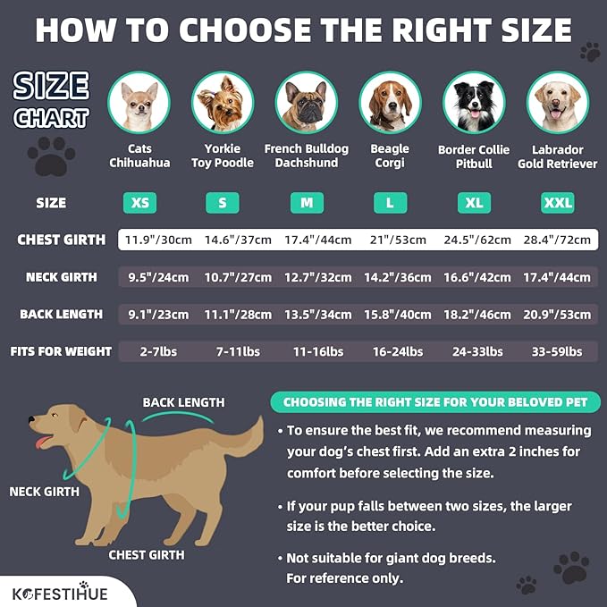 - Not suitable for small or medium dog breeds. Size XL fits 24.5" chest, 18.2" back, and 16.6" neck. Please prioritize chest measurement when selecting the size. Ideal for Beagle, Standard Dachshund, English Bulldog, Boxer, French Bulldog. If your dog's measurements fall between sizes, choose the larger one.