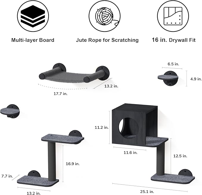 - Easy Installation - The cat wall climber is compatible with 16-inch full-stud mounting for drywall and solid walls, and it comes with all the necessary hardware and thorough instructions for easy installation.
