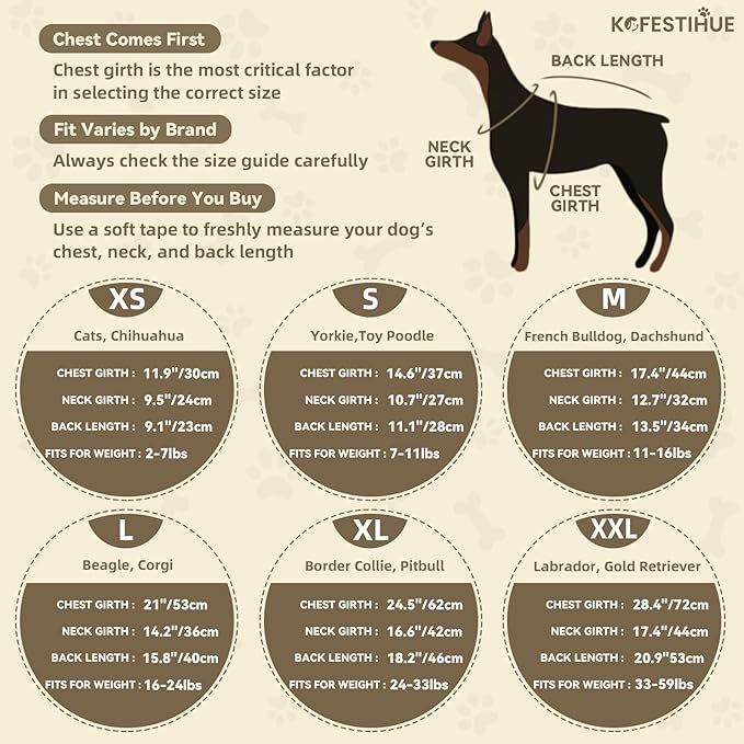- Not suitable for medium, or large dog breeds. Size XS fits 11.9" chest, 9.1" back, and 9.5" neck. Please prioritize chest measurement when selecting the size. Ideal for Chihuahua, Yorkshire Terrier, Toy Poodle, Maltese, Morkie, Pomeranian, Miniature Pinscher, Shih Tzu. If your dog's measurements fall between sizes, choose the larger one.