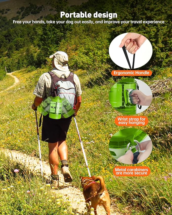 - Enhanced durability: This water bottle for dogs on the go adopts a thickened bottle body + anti-fall design, which is durable and can be used in high-intensity scenarios such as outdoors, camping, walking, beach, hunting, etc., reducing the risk of damage, and can be used for a long time without frequent replacement