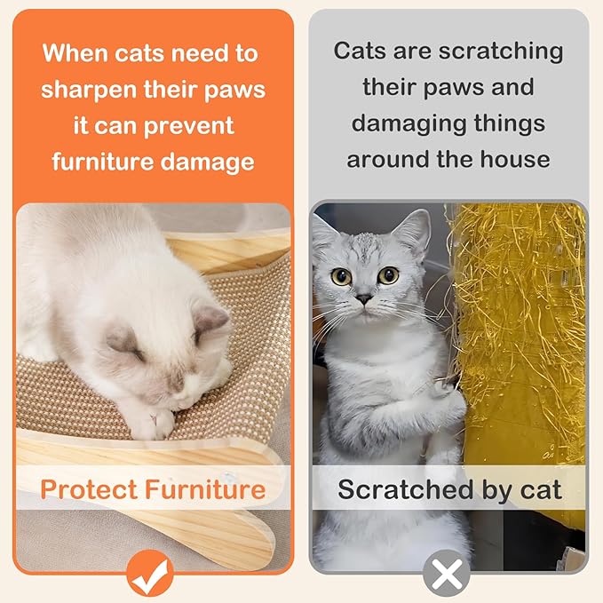 - Comfortable Sleep: Sisal cat scratching mat adopts a curved design that is more in line with the cat's body structure and fits the curve of the cat's comfortable sleeping posture, making the cat sleep more comfortably in this cat scratcher chair