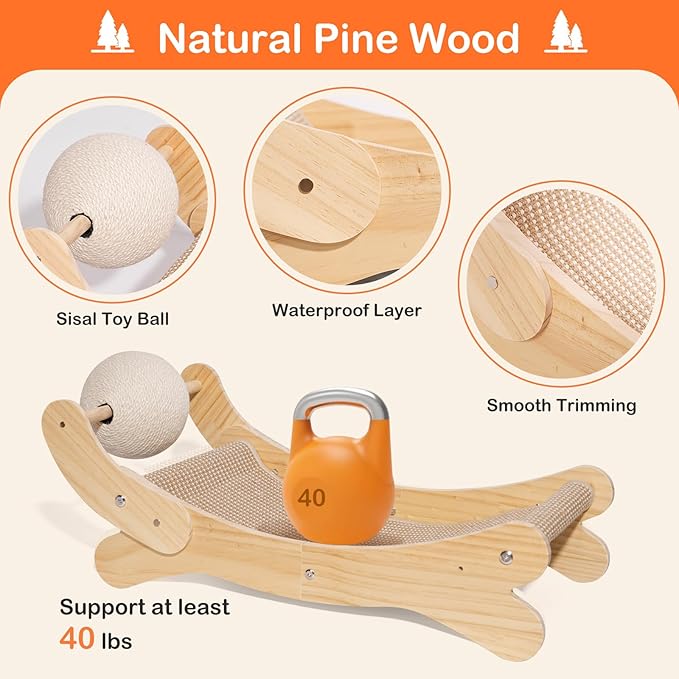 - Durable Sisal Cat Scratcher Bed: The modern cat scratcher fixed with screws, Natural solid wood support, high strength load-bearing, no worries for cats under 40 lbs. The surface is waterproof for greater durability and easy to assembly