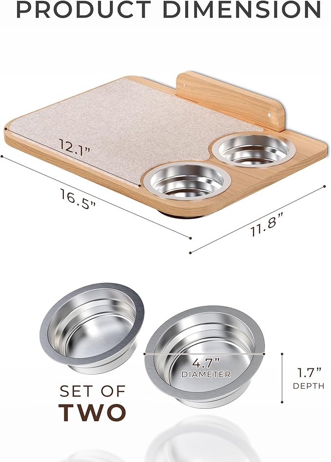 - Secure Feeding Setup – A raised, built-in dog proof cat feeding station with stainless steel bowls keeps meals tidy, elevated, and protected from curious pups.