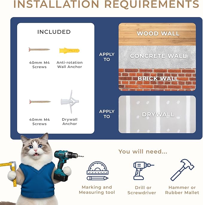 - Made for Years of Use – Mortise and tenon assembly ensures lasting strength and structural stability, whether wall-mounted or used in combination with an over the door cat tree.